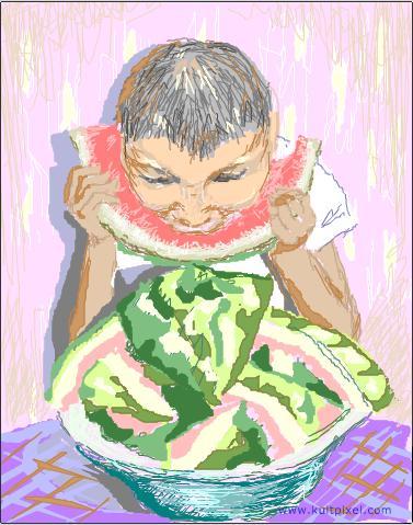 - Ну, а у тебя как дела, как лето прошло? – спросил Алешка и потянулся за новым кусочком арбуза.