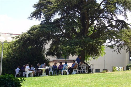 Их было много, человек 30. Они собрались вместе, под открытым небом, такие все ухоженные и нарядные. Чинно расселись на белые пластмассовые стулья вокруг столов. На фоне северной буйной израильской зелени все выглядело как на картине. Я хотела сделать несколько снимков, но, вдруг, услышала, что они поют.