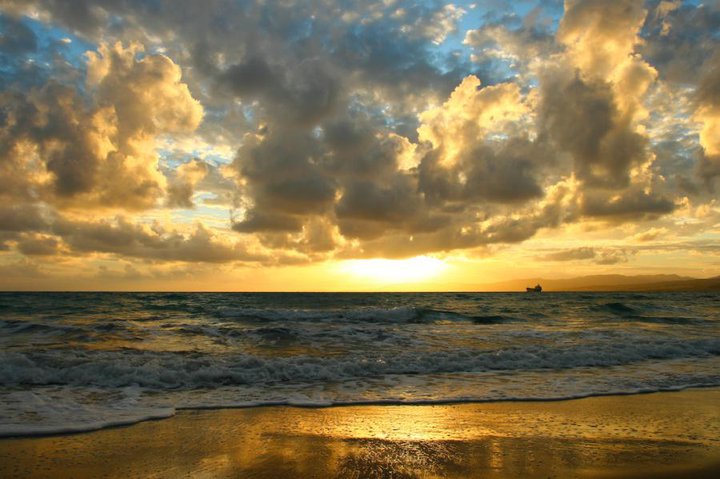 Золотые облака по сиреневому небу