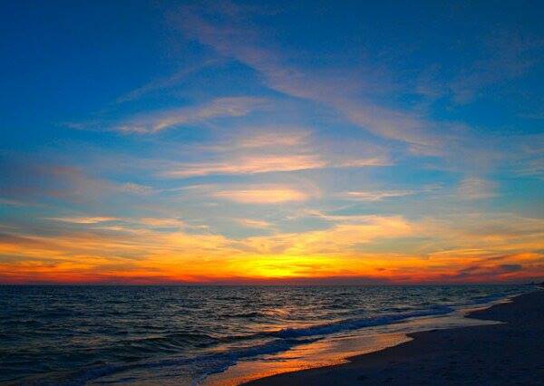 Расплавленное золото предзакатного солнца разбрызгано в безбрежном аквамарине небес. Каждая капелька сначала ослепляет тонким направленным лучом так, что становится больно глазам, а потом медленно растворяется и исчезает в синеве бездонных небесных глубин... не смотреть на это нельзя...